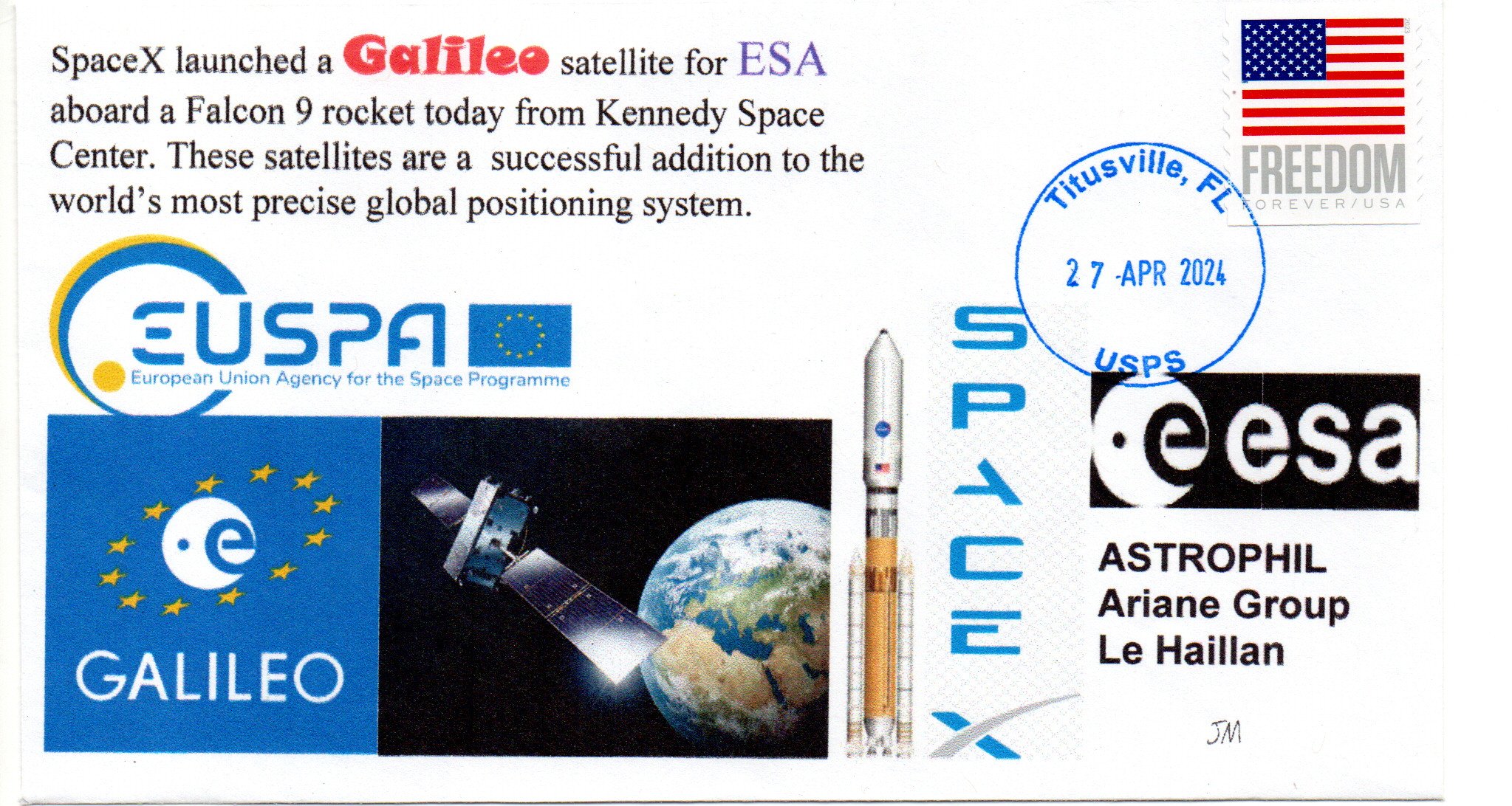 Accueil / ** TOUTES ** / PRODUCTIONS ASTROPHIL / - Spatial hors Kourou / 27 Avril 2024 – Lancement par SpaceX par un Falcon 9 de deux satellites Galileo (ESA) FM 25 et 27 27 Avril 2024 – Lancement par SpaceX par un Falcon 9 de deux satellites Galileo (ESA) FM 25 et 278,00€ Réf 4001200 2 en stock quantité de 27 Avril 2024 - Lancement par SpaceX par un Falcon 9 de deux satellites Galileo (ESA) FM 25 et 27 Ajouter au panier Catégories : - Spatial hors Kourou, ** TOUTES **, PRODUCTIONS ASTROPHIL Description Description GALILEO FM25 ET 27 LANCÉS PAR SPACEX Il était 20h34 en Floride le 27 avril lorsqu’un Falcon 9 de SpaceX a quitté le pas de tir LC39A du centre spatial Kennedy (pas de tir que la firme américaine loue à la NASA) avec sous sa coiffe FM 25 et 27. Produits similaires Vol L01 du 24/12/1979 (Carte Postale Maximum) 110,00€ Lire la suite Vol L6 du 16 Juin 1983 20,00€ Lire la suite Vol L 5 du 09 Septembre 1982 30,00€ Ajouter au panier Vol 34 du 27 Octobre 1989 2,50€ Lire la suite