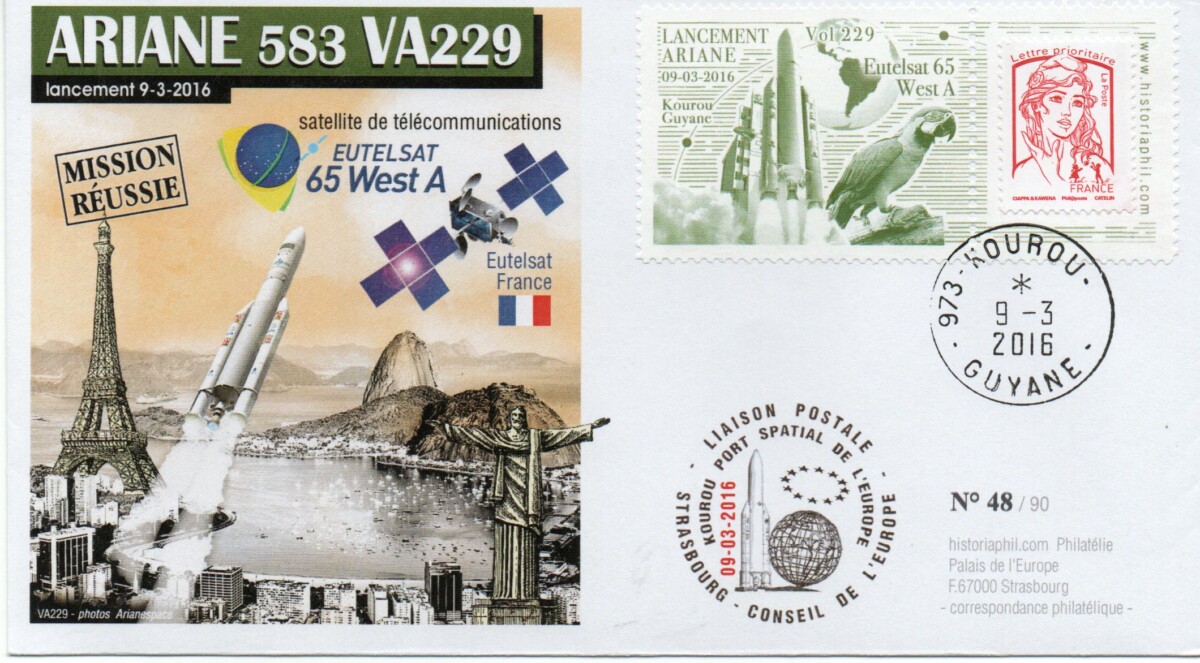 Accueil / ** TOUTES ** / CIRCULATIONS / - Circulations base Kourou - Ariane / ARIANE 5ECA VA229 – Kourou 09 Mars 2016 – Enveloppe Conseil de l’Europe – C14 ARIANE 5ECA VA229 – Kourou 09 Mars 2016 – Enveloppe Conseil de l’Europe – C142,00€ diffusion 14 1 en stock quantité de ARIANE 5ECA VA229 – Kourou 09 Mars 2016 – Enveloppe Conseil de l’Europe – C14 Ajouter au panier Catégories : - Circulations base Kourou - Ariane, ** TOUTES **, CIRCULATIONS Description Informations complémentaires Description Passager : Eutelsat-65 – Ouest-A Informations complémentaires Poids 7 g Produits similaires Vol L03 du 19 Juin 1981 40,00€ Lire la suite Vol L8 du 04 Mars 1984 15,00€ Lire la suite Vol L04 du 19 Décembre 1981 30,00€ Lire la suite Vol 35 du 21 Janvier 1990 2,50€ Ajouter au panier