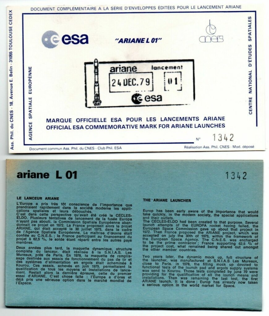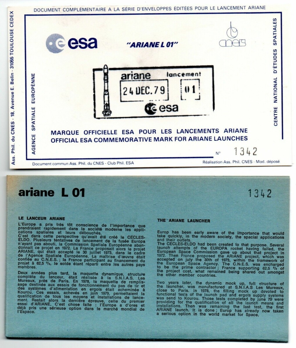 Accueil / ** TOUTES ** / CIRCULATIONS / - Circulations base Kourou - Ariane / Ariane L01 Pochette CNES (10 Enveloppes Lancement, Docking, + Carte ESA) – C 19 Ariane L01 Pochette CNES (10 Enveloppes Lancement, Docking, + Carte ESA) – C 1925,00€ Circulation 19 10 en stock quantité de Ariane L01 Pochette CNES (10 Enveloppes Lancement, Docking, + Carte ESA) - C 19 Ajouter au panier Catégories : - Circulations base Kourou - Ariane, ** TOUTES **, CIRCULATIONS Description Informations complémentaires Description Informations complémentaires Poids 22 g Produits similaires Vol 39 du 12 Octobre 1990 2,50€ Ajouter au panier Vol L8 du 04 Mars 1984 15,00€ Lire la suite Vol 35 du 21 Janvier 1990 2,50€ Ajouter au panier Vol 34 du 27 Octobre 1989 2,50€ Lire la suite