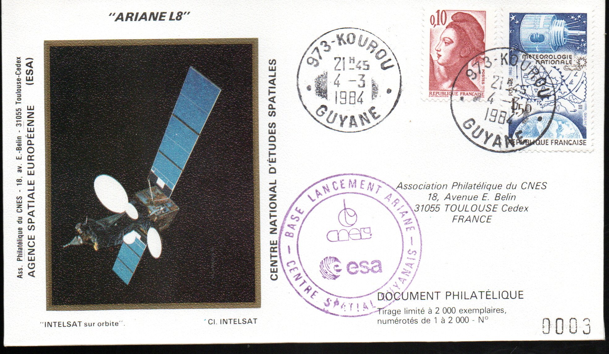 Accueil / ** TOUTES ** / CIRCULATIONS / - Circulations base Kourou - Ariane / Lancement Ariane 1 – Vol 8 – Kourou 04 Mars 1984 – Pochette CNES 2 enveloppes – C 62 – 9010632 Lancement Ariane 1 – Vol 8 – Kourou 04 Mars 1984 – Pochette CNES 2 enveloppes – C 62 – 901063210,00€ 2 en stock quantité de Lancement Ariane 1 - Vol 8 - Kourou 04 Mars 1984 - Pochette CNES 2 enveloppes - C 62 - 9010632 Ajouter au panier Catégories : - Circulations base Kourou - Ariane, ** TOUTES **, CIRCULATIONS Description Description Produits similaires Vol 9 du 22 Mai 1984 – 1009000 15,00€ Ajouter au panier Vol 37 du 24 Juillet 1990 – 1037000 2,50€ Ajouter au panier Vol L03 du 19 Juin 1981 – 1003000 40,00€ Ajouter au panier Vol L04 du 19 Décembre 1981 – 1004000 30,00€ Ajouter au panier