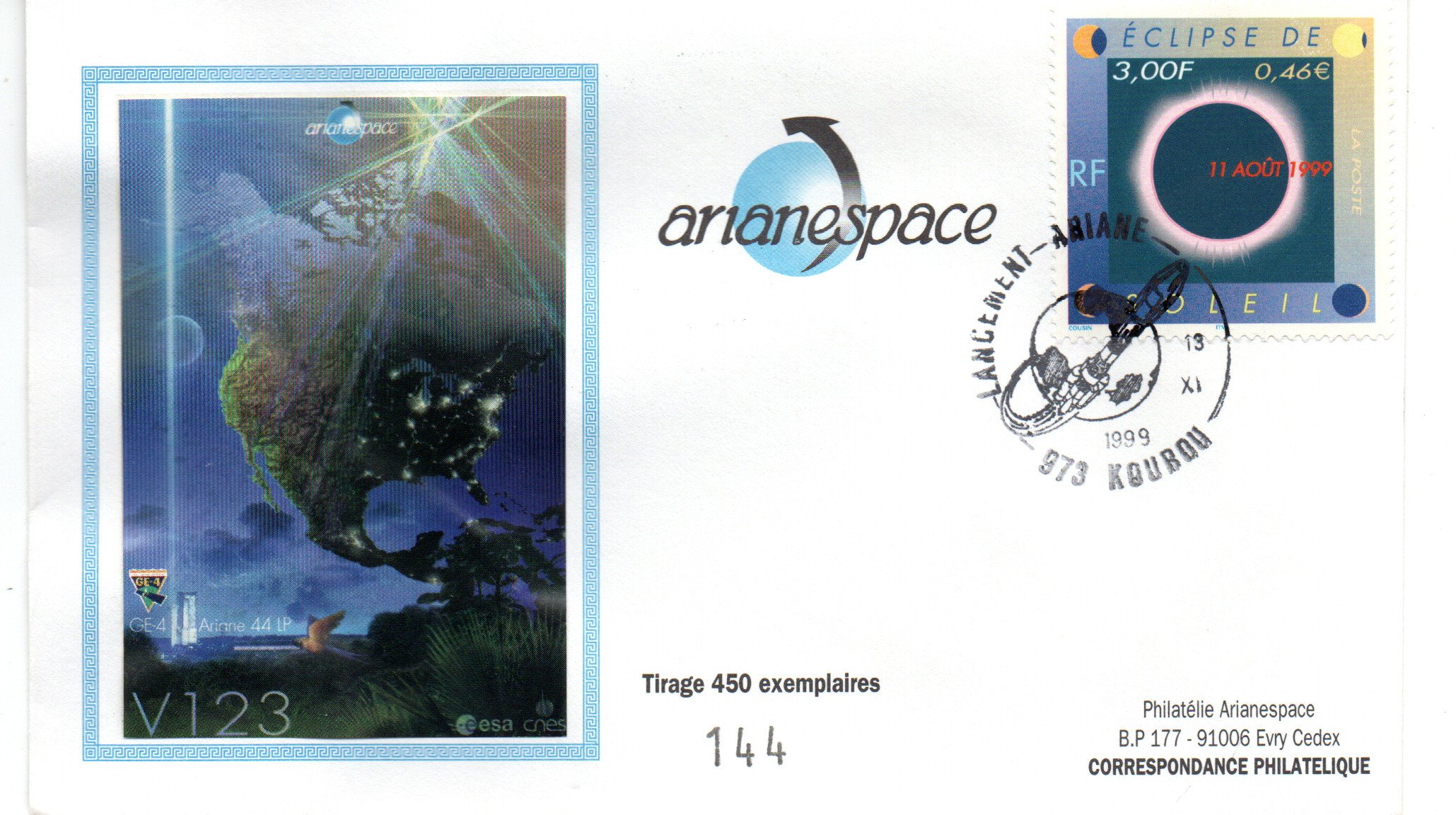 Accueil / ** TOUTES ** / CIRCULATIONS / - Circulations base Kourou - Ariane / Lancement Ariane 4 – vol 123 – Kourou 13 Novembre 1999 – Arianespace – C 52 – 9010498 Lancement Ariane 4 – vol 123 – Kourou 13 Novembre 1999 – Arianespace – C 52 – 90104981,00€ 1 en stock quantité de Lancement Ariane 4 - vol 123 - Kourou 13 Novembre 1999 - Arianespace - C 52 - 9010498 Ajouter au panier Catégories : - Circulations base Kourou - Ariane, ** TOUTES **, CIRCULATIONS Description Description Produits similaires Vol L03 du 19 Juin 1981 40,00€ Lire la suite Vol 39 du 12 Octobre 1990 2,50€ Ajouter au panier Vol 35 du 21 Janvier 1990 2,50€ Ajouter au panier Vol 41 du 15 Janvier 1991 2,00€ Ajouter au panier