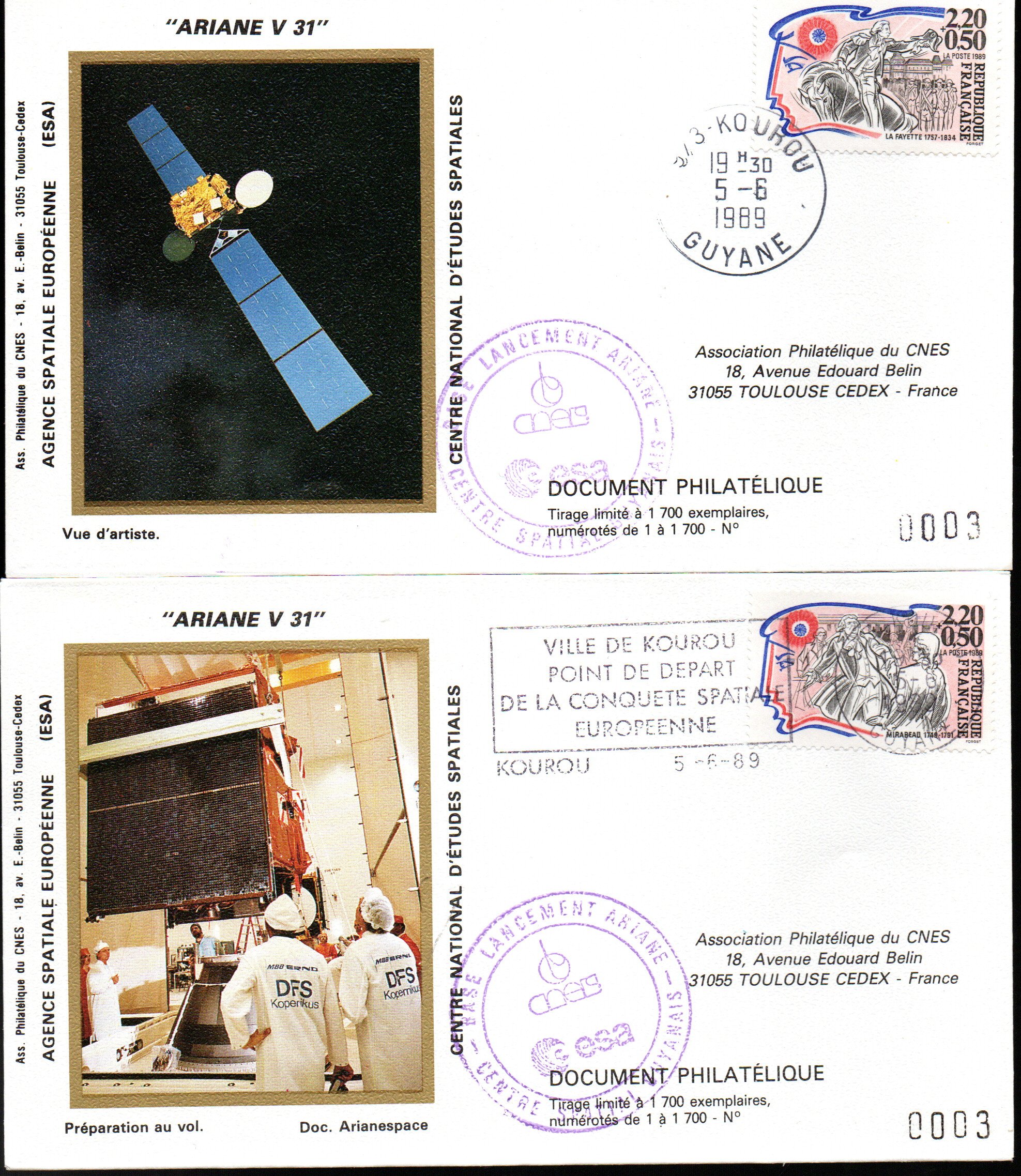 Accueil / ** TOUTES ** / CIRCULATIONS / - Circulations base Kourou - Ariane / Lancement Ariane 4 – Vol 31 – Kourou 05,Juin 1989 – Pochette CNES 3 enveloppes – C 63 – 9010655 Lancement Ariane 4 – Vol 31 – Kourou 05,Juin 1989 – Pochette CNES 3 enveloppes – C 63 – 90106551,00€ 2 en stock quantité de Lancement Ariane 4 - Vol 31 - Kourou 05,Juin 1989 - Pochette CNES 3 enveloppes - C 63 - 9010655 Ajouter au panier Catégories : - Circulations base Kourou - Ariane, ** TOUTES **, CIRCULATIONS Description Description Produits similaires Vol L6 du 16 Juin 1983 20,00€ Lire la suite Vol 40 du 20 Novembre 1990 2,00€ Ajouter au panier Vol L04 du 19 Décembre 1981 – 1004000 30,00€ Ajouter au panier Vol L01 du 24/12/1979 (signée Chef du Groupe Ariane) 110,00€ Lire la suite