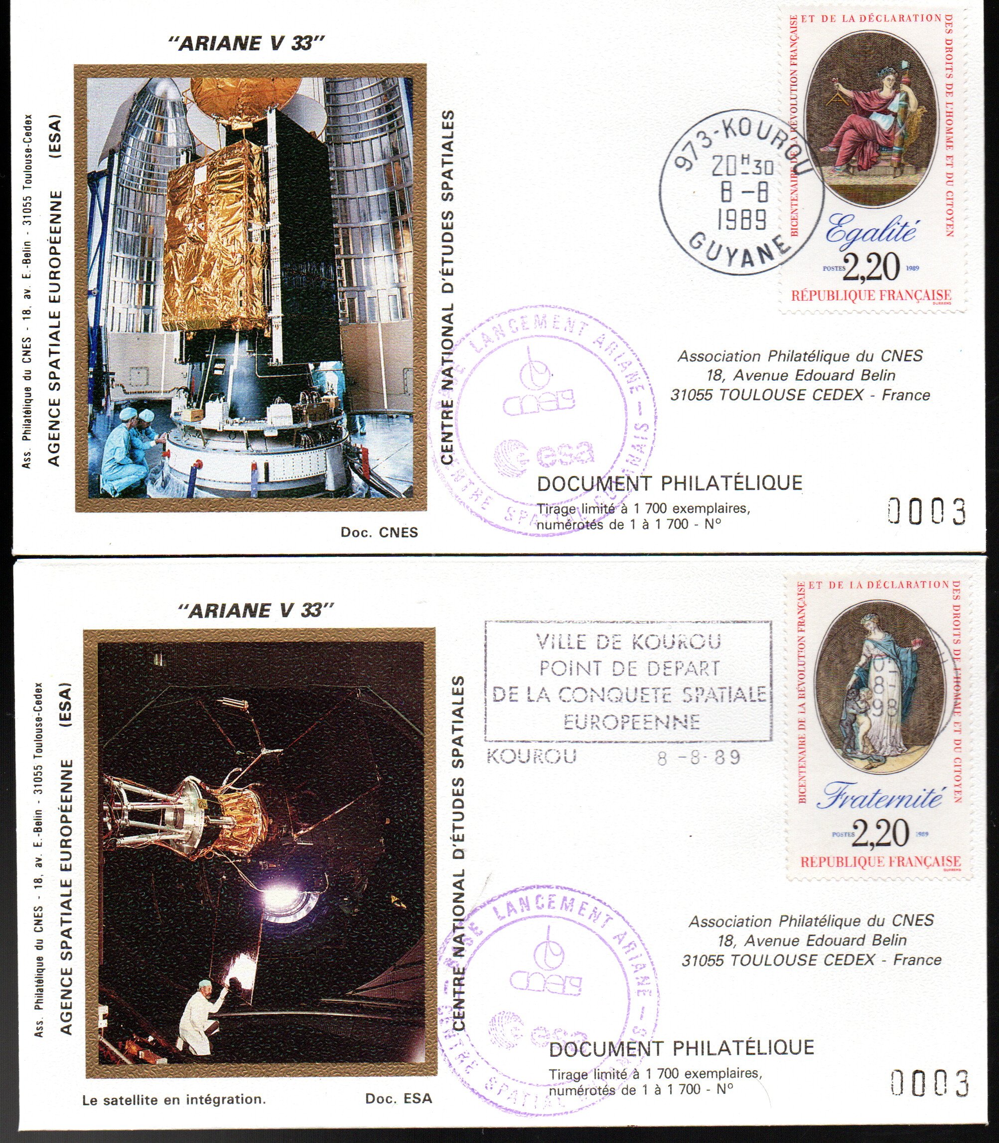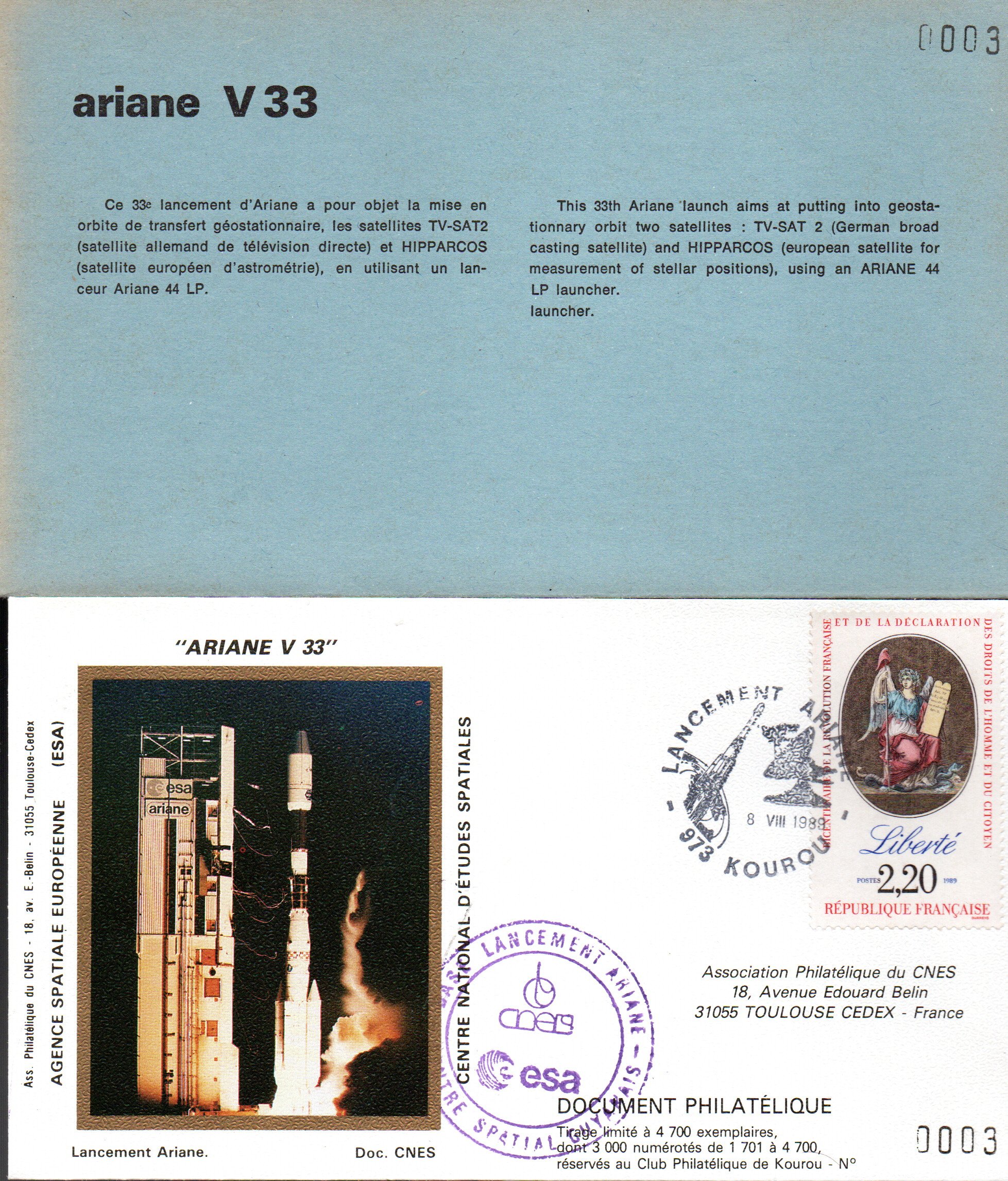 Accueil / ** TOUTES ** / CIRCULATIONS / - Circulations base Kourou - Ariane / Lancement Ariane 4 – Vol 33 – Kourou 08 Aout 1989 – Pochette CNES 3 enveloppes -C 63 – 9010657 Lancement Ariane 4 – Vol 33 – Kourou 08 Aout 1989 – Pochette CNES 3 enveloppes -C 63 – 90106571,00€ 2 en stock quantité de Lancement Ariane 4 - Vol 33 - Kourou 08 Aout 1989 - Pochette CNES 3 enveloppes -C 63 - 9010657 Ajouter au panier Catégories : - Circulations base Kourou - Ariane, ** TOUTES **, CIRCULATIONS Description Description Produits similaires Vol 37 du 24 Juillet 1990 – 1037000 2,50€ Ajouter au panier Vol 36 du 22 Février 1990 – 1036000 2,50€ Ajouter au panier Vol L6 du 16 Juin 1983 20,00€ Lire la suite Vol L03 du 19 Juin 1981 – 1003010 40,00€ Ajouter au panier