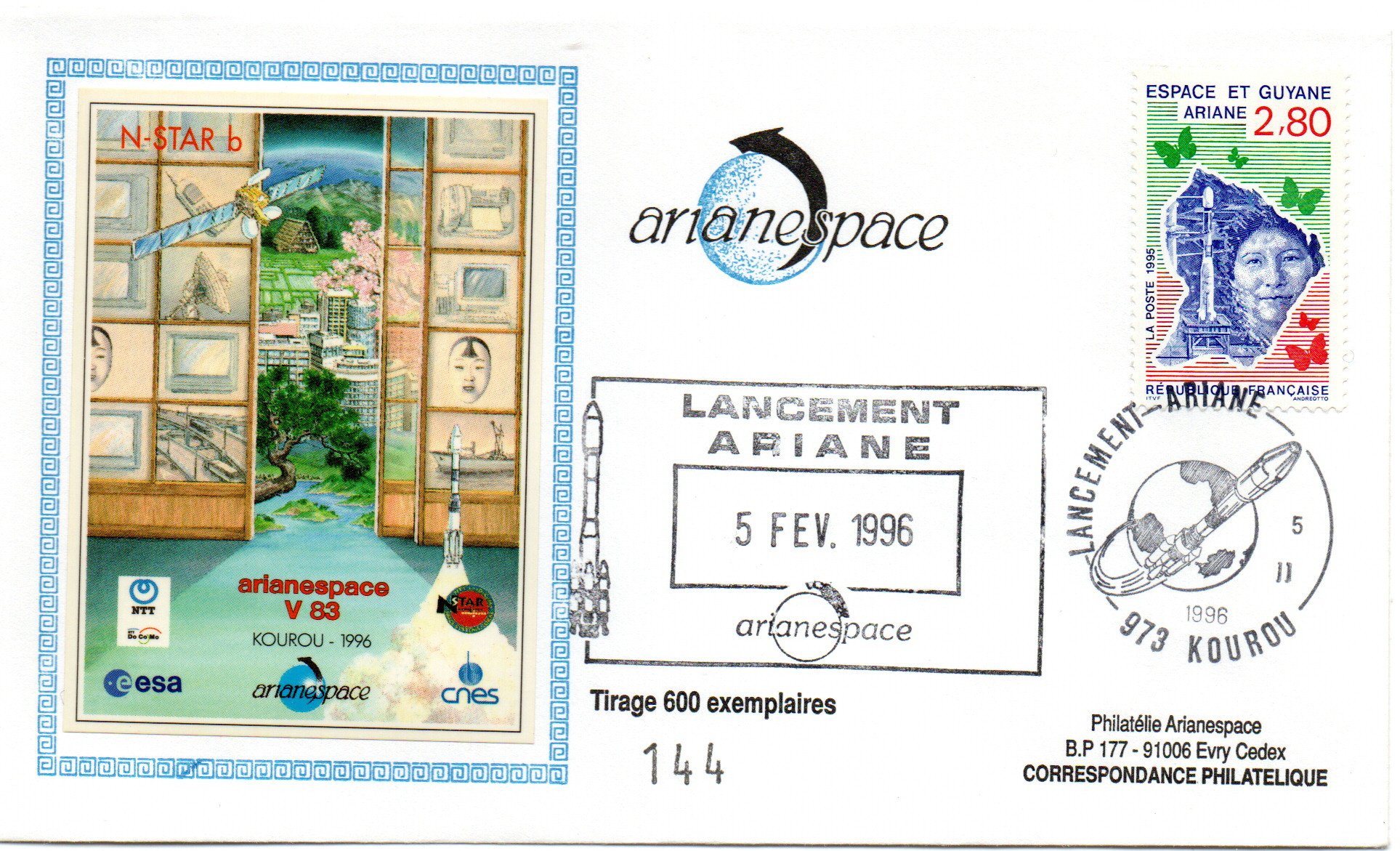 Accueil / ** TOUTES ** / CIRCULATIONS / - Circulations base Kourou - Ariane / Lancement Ariane 4 – Vol 83 – Kourou 05 Février 1996 – Enveloppe Arianespace – C 51 – 9010463 Lancement Ariane 4 – Vol 83 – Kourou 05 Février 1996 – Enveloppe Arianespace – C 51 – 90104631,00€ 1 en stock quantité de Lancement Ariane 4 - Vol 83 - Kourou 05 Février 1996 - Enveloppe Arianespace - C 51 - 9010463 Ajouter au panier Catégories : - Circulations base Kourou - Ariane, ** TOUTES **, CIRCULATIONS Description Description Produits similaires Vol 9 du 22 Mai 1984 15,00€ Ajouter au panier Vol 35 du 21 Janvier 1990 2,50€ Ajouter au panier Vol L03 du 19 Juin 1981 40,00€ Lire la suite Vol L01 du 24/12/1979 (Carte Postale Maximum) 110,00€ Lire la suite