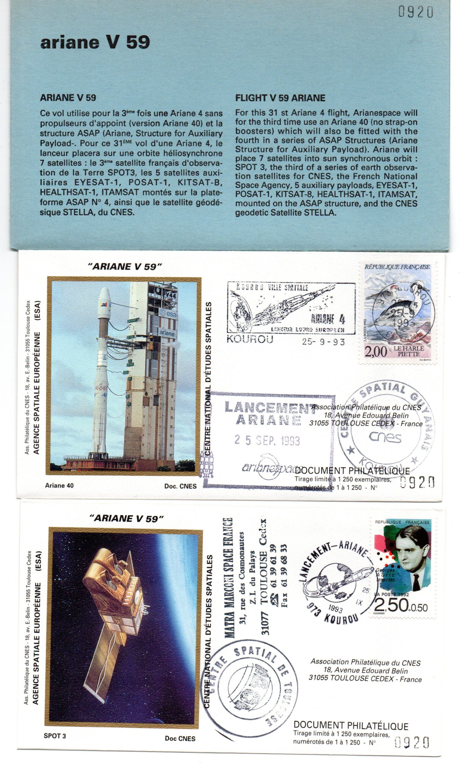 Accueil / ** TOUTES ** / CIRCULATIONS / - Circulations base Kourou - Ariane / Lancement Ariane 40 – Vol 59 – 25/09/1993 – Pochette CNES 4 enveloppes – C 40 Lancement Ariane 40 – Vol 59 – 25/09/1993 – Pochette CNES 4 enveloppes – C 401,00€ ref 9010314 1 en stock quantité de Lancement Ariane 40 – Vol 59 – 25/09/1993 – Pochette CNES 4 enveloppes – C 40 Ajouter au panier Catégories : - Circulations base Kourou - Ariane, ** TOUTES **, CIRCULATIONS Description Description Produits similaires Vol 40 du 20 Novembre 1990 2,00€ Ajouter au panier Vol L8 du 04 Mars 1984 15,00€ Lire la suite Vol L01 du 24/12/1979 (Carte Postale Maximum) 110,00€ Lire la suite Vol 38 du 30 Aout 1990 2,50€ Ajouter au panier