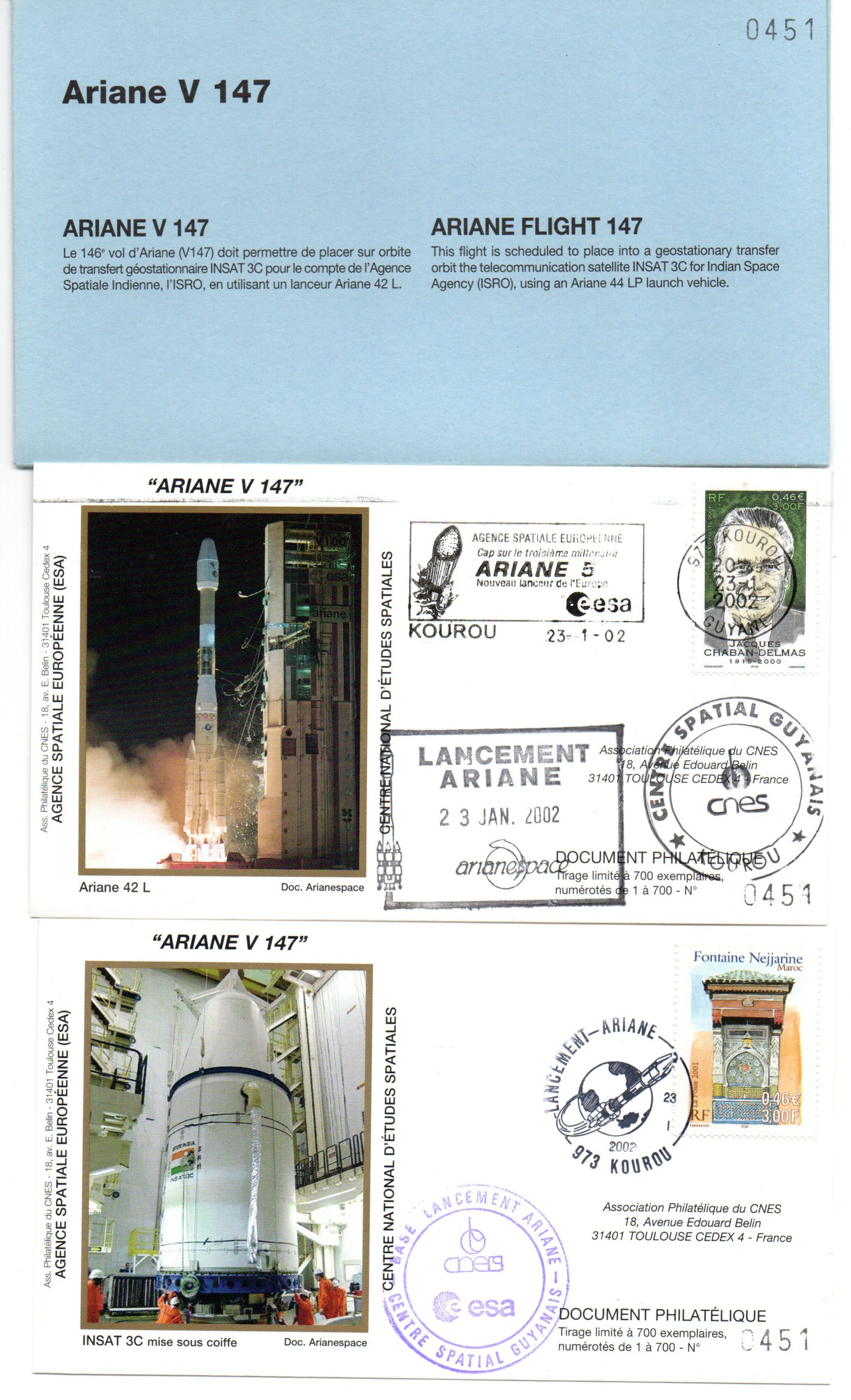 Accueil / ** TOUTES ** / CIRCULATIONS / - Circulations base Kourou - Ariane / Lancement Ariane 42L – Vol 147 – Kourou 23/01/2002 – Pochette CNES 2 Env – C 41 Lancement Ariane 42L – Vol 147 – Kourou 23/01/2002 – Pochette CNES 2 Env – C 411,00€ ref 9010343 1 en stock quantité de Lancement Ariane 42L - Vol 147 – Kourou 23/01/2002 - Pochette CNES 2 Env - C 41 Ajouter au panier Catégories : - Circulations base Kourou - Ariane, ** TOUTES **, CIRCULATIONS Description Description Produits similaires Vol 12 du 08 Février 1985 10,00€ Lire la suite Vol L6 du 16 Juin 1983 20,00€ Lire la suite Vol 35 du 21 Janvier 1990 2,50€ Ajouter au panier Vol L8 du 04 Mars 1984 15,00€ Lire la suite