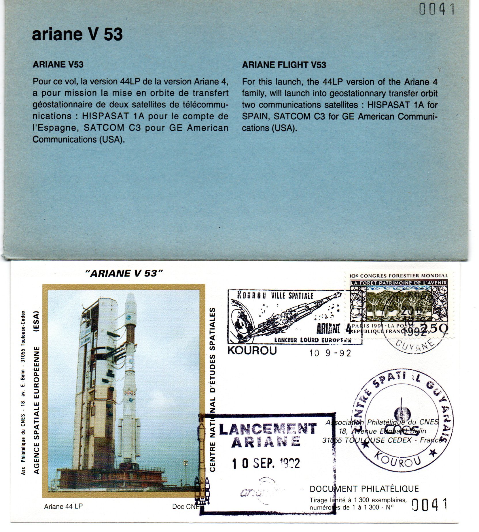 Accueil / ** TOUTES ** / CIRCULATIONS / - Circulations base Kourou - Ariane / Lancement Ariane 44LP – Vol 53 – 10/09/1992 – Pochette CNES 3 enveloppes – C 39 Lancement Ariane 44LP – Vol 53 – 10/09/1992 – Pochette CNES 3 enveloppes – C 391,00€ ref 9010308 3 en stock quantité de Lancement Ariane 44LP – Vol 53 – 10/09/1992 – Pochette CNES 3 enveloppes – C 39 Ajouter au panier Catégories : - Circulations base Kourou - Ariane, ** TOUTES **, CIRCULATIONS Description Description Produits similaires Vol 35 du 21 Janvier 1990 2,50€ Ajouter au panier Vol 34 du 27 Octobre 1989 2,50€ Lire la suite Vol 39 du 12 Octobre 1990 2,50€ Ajouter au panier Vol 9 du 22 Mai 1984 15,00€ Ajouter au panier