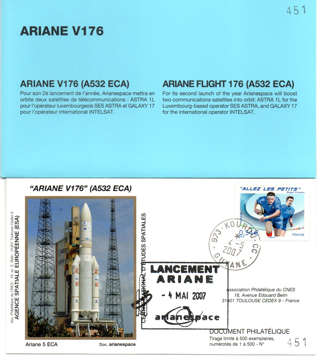 Accueil / ** TOUTES ** / CIRCULATIONS / - Circulations base Kourou - Ariane / Lancement Ariane 532 ECA – Vol 176 – Kourou 04/05/2007 – Pochette CNES 3 Enveloppes – C 43 Lancement Ariane 532 ECA – Vol 176 – Kourou 04/05/2007 – Pochette CNES 3 Enveloppes – C 431,00€ ref 9010371 1 en stock quantité de Lancement Ariane 532 ECA – Vol 176 – Kourou 04/05/2007 – Pochette CNES 3 Enveloppes – C 43 Ajouter au panier Catégories : - Circulations base Kourou - Ariane, ** TOUTES **, CIRCULATIONS Description Description Produits similaires Vol 40 du 20 Novembre 1990 2,00€ Ajouter au panier Vol 41 du 15 Janvier 1991 2,00€ Ajouter au panier Vol 13 du 07 Mai 1985 10,00€ Ajouter au panier Vol 33 du 08 Aout 1989 2,50€ Ajouter au panier