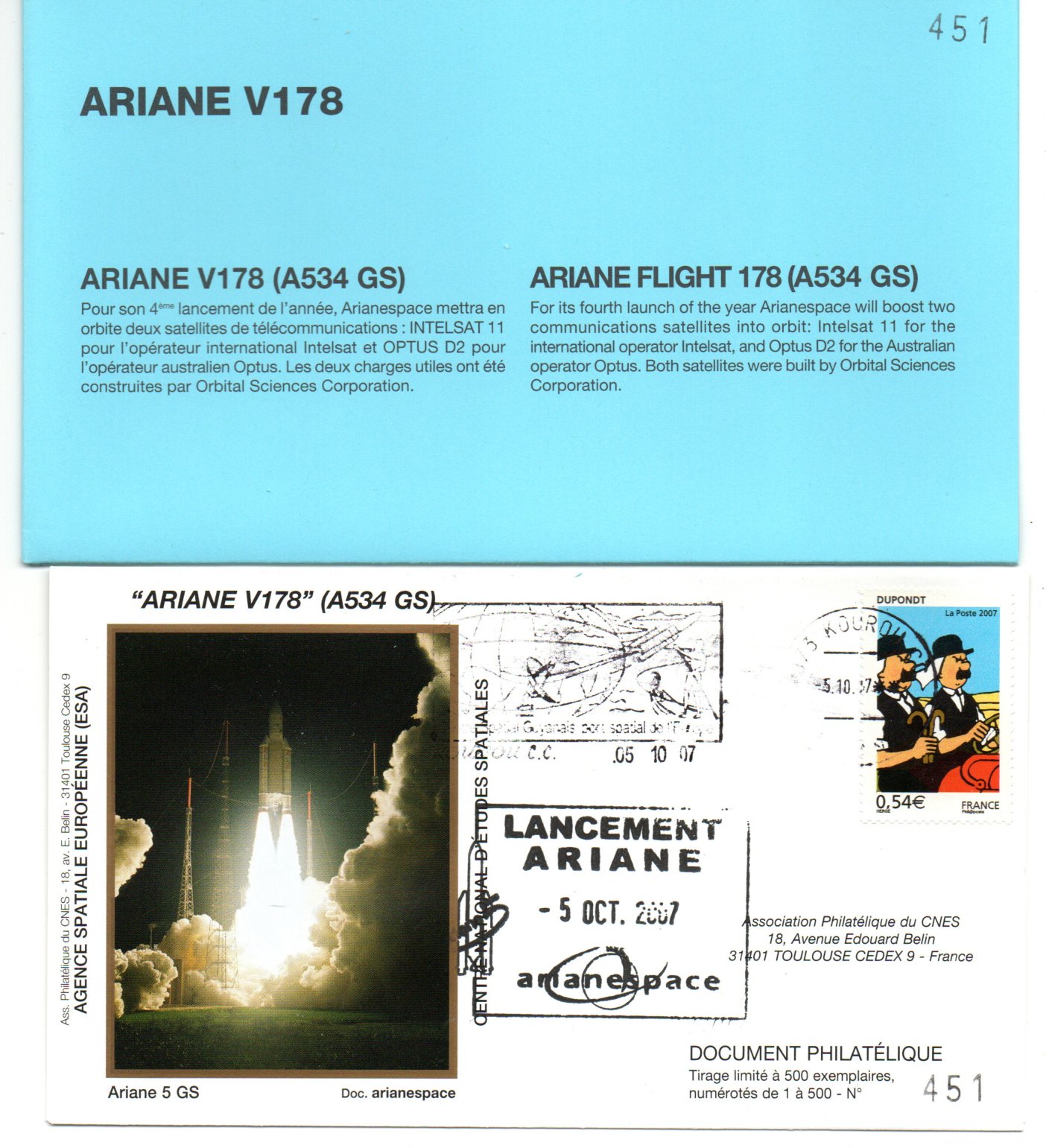 Accueil / ** TOUTES ** / CIRCULATIONS / - Circulations base Kourou - Ariane / Lancement Ariane 534 GS – Vol 178 – Kourou 05/10/2007 – Pochette CNES 3 Enveloppes – C 43 Lancement Ariane 534 GS – Vol 178 – Kourou 05/10/2007 – Pochette CNES 3 Enveloppes – C 431,00€ ref 9010373 1 en stock quantité de Lancement Ariane 534 GS – Vol 178 – Kourou 05/10/2007 – Pochette CNES 3 Enveloppes – C 43 Ajouter au panier Catégories : - Circulations base Kourou - Ariane, ** TOUTES **, CIRCULATIONS Description Description Produits similaires Vol L01 du 24/12/1979 (signée Chef du Groupe Ariane) 110,00€ Lire la suite Vol L8 du 04 Mars 1984 15,00€ Lire la suite Vol 38 du 30 Aout 1990 2,50€ Ajouter au panier Vol L04 du 19 Décembre 1981 30,00€ Lire la suite