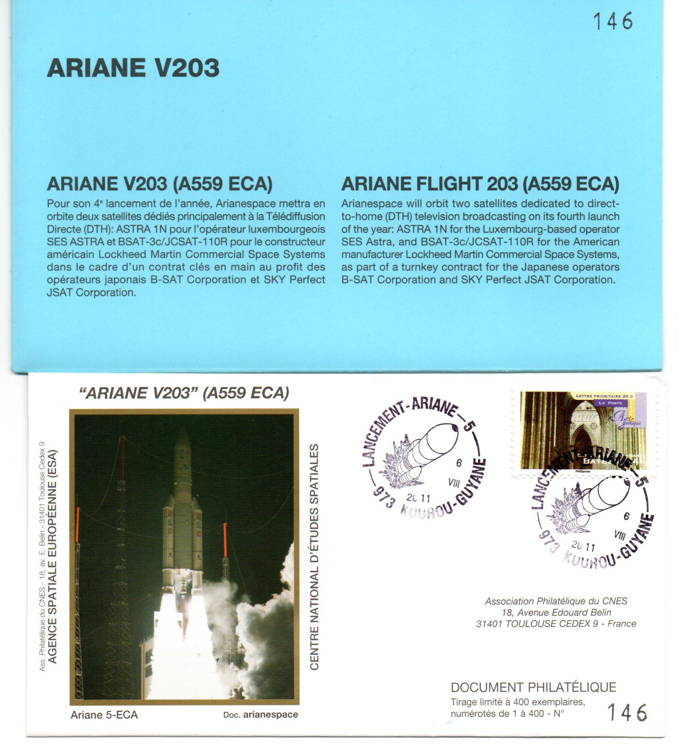 Accueil / ** TOUTES ** / CIRCULATIONS / - Circulations base Kourou - Ariane / Lancement Ariane 559 ECA – Vol 203 – Kourou 06/08/2011 – Pochette CNES 3 Enveloppes – C 44 Lancement Ariane 559 ECA – Vol 203 – Kourou 06/08/2011 – Pochette CNES 3 Enveloppes – C 441,00€ Réf 9010397 25 en stock quantité de Lancement Ariane 559 ECA – Vol 203 – Kourou 06/08/2011 – Pochette CNES 3 Enveloppes – C 44 Ajouter au panier Catégories : - Circulations base Kourou - Ariane, ** TOUTES **, CIRCULATIONS Description Description Produits similaires Vol L04 du 19 Décembre 1981 30,00€ Lire la suite Vol 14 du 02 Juillet 1985 10,00€ Lire la suite Vol 33 du 08 Aout 1989 2,50€ Ajouter au panier Vol L 5 du 09 Septembre 1982 30,00€ Ajouter au panier