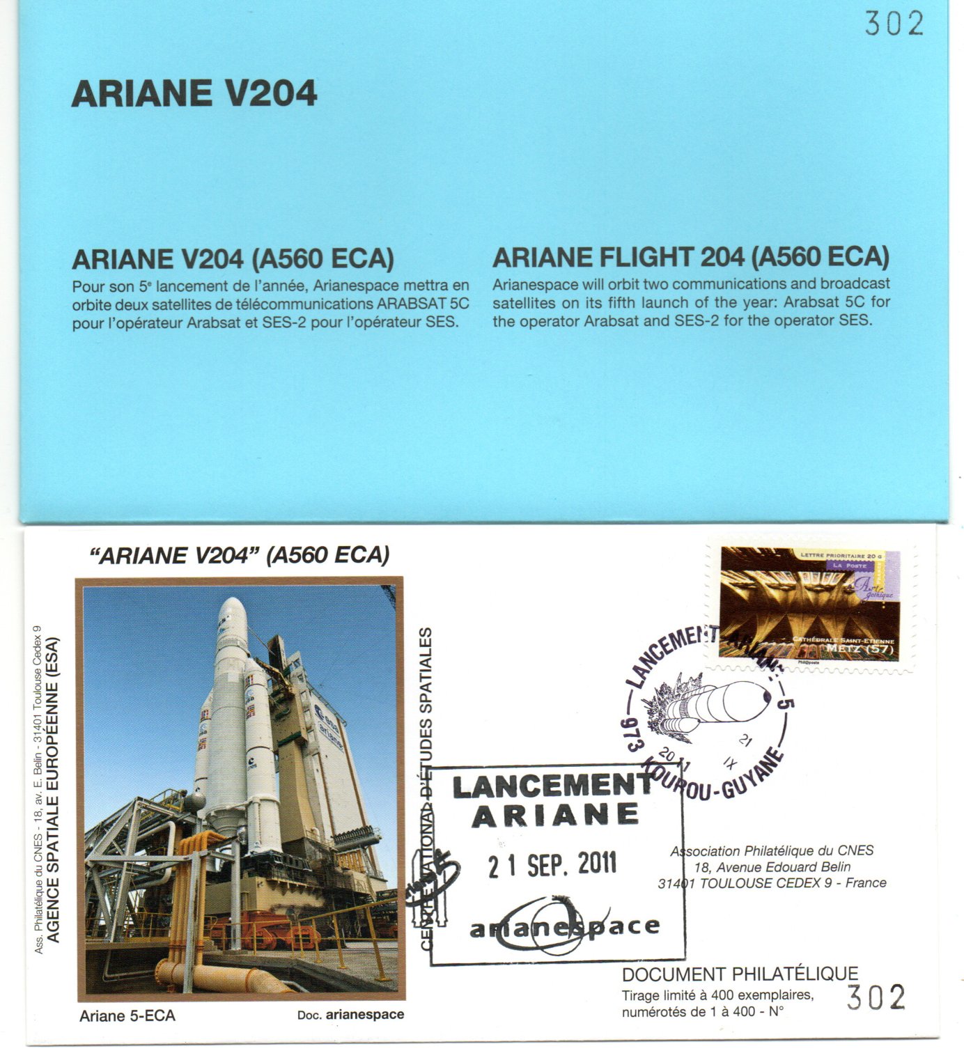 Accueil / ** TOUTES ** / CIRCULATIONS / - Circulations base Kourou - Ariane / Lancement Ariane 560 ECA – Vol 204 – Kourou 21/09/2011 – Pochette CNES 3 Enveloppes – C 44 Lancement Ariane 560 ECA – Vol 204 – Kourou 21/09/2011 – Pochette CNES 3 Enveloppes – C 441,00€ réf 9010398 24 en stock quantité de Lancement Ariane 560 ECA – Vol 204 – Kourou 21/09/2011 – Pochette CNES 3 Enveloppes – C 44 Ajouter au panier Catégories : - Circulations base Kourou - Ariane, ** TOUTES **, CIRCULATIONS Description Description Produits similaires Vol L01 du 24/12/1979 (signée Chef du Groupe Ariane) 110,00€ Lire la suite Vol 12 du 08 Février 1985 10,00€ Lire la suite Vol 38 du 30 Aout 1990 2,50€ Ajouter au panier Vol 36 du 22 Février 1990 2,50€ Ajouter au panier