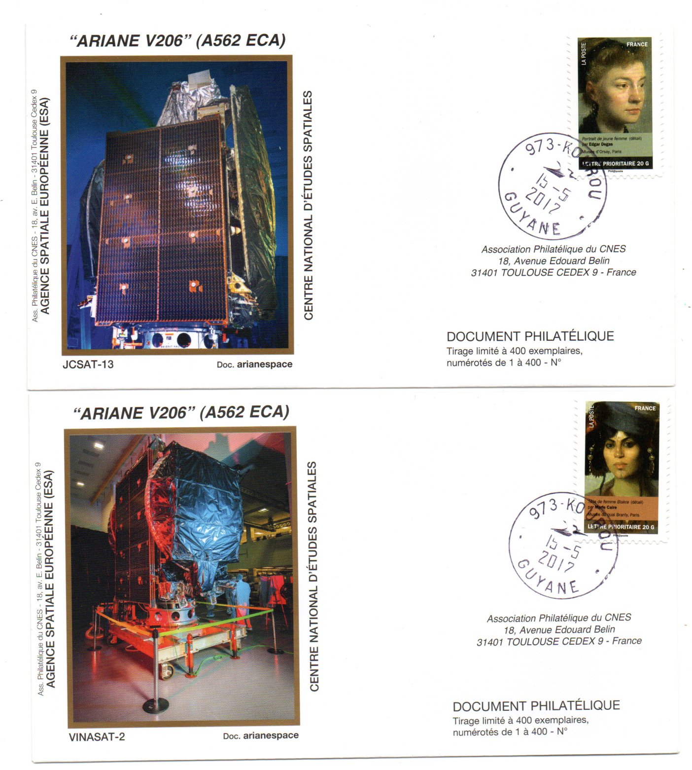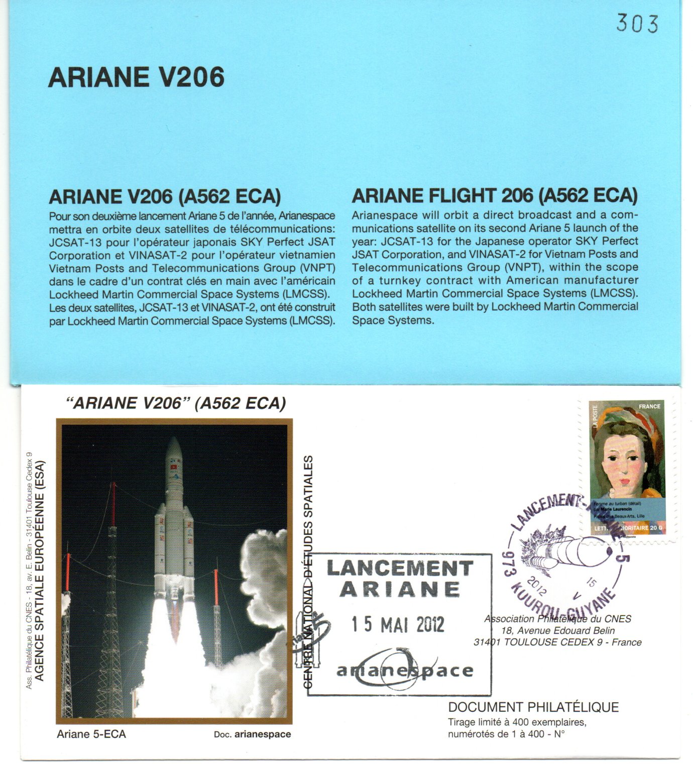 Accueil / ** TOUTES ** / CIRCULATIONS / - Circulations base Kourou - Ariane / Lancement Ariane 562 ECA – Vol 206 – Kourou 15/05/2012 – Pochette CNES 3 Enveloppes – C 44 Lancement Ariane 562 ECA – Vol 206 – Kourou 15/05/2012 – Pochette CNES 3 Enveloppes – C 441,00€ Réf 9010399 25 en stock quantité de Lancement Ariane 562 ECA – Vol 206 – Kourou 15/05/2012 – Pochette CNES 3 Enveloppes – C 44 Ajouter au panier Catégories : - Circulations base Kourou - Ariane, ** TOUTES **, CIRCULATIONS Description Description Produits similaires Vol 11 du 09 Novembre 1984 10,00€ Ajouter au panier Vol L02 du 23 mai 1980 45,00€ Lire la suite Vol L01 du 24/12/1979 (Carte Postale Maximum) 110,00€ Lire la suite Vol 9 du 22 Mai 1984 15,00€ Ajouter au panier