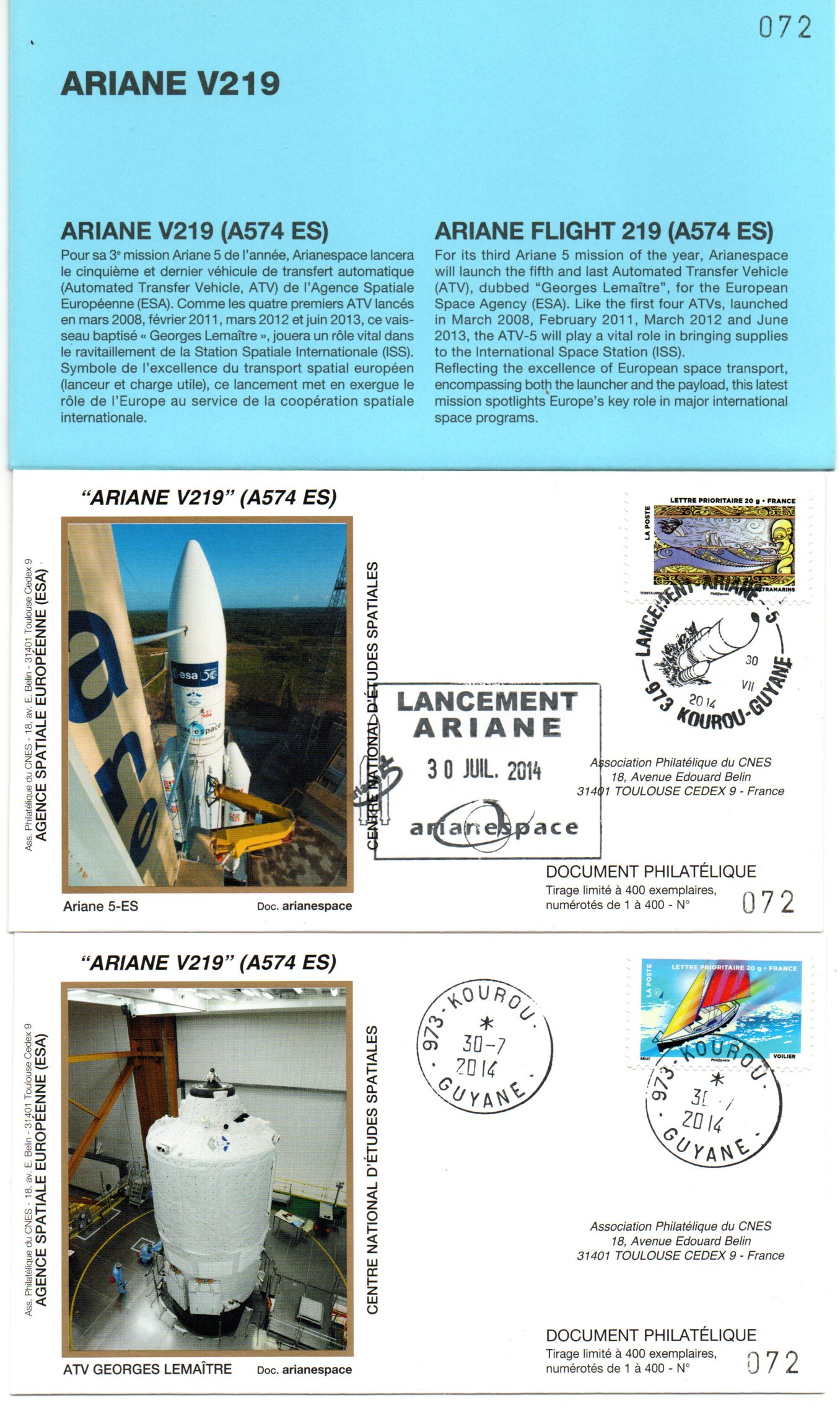 Accueil / ** TOUTES ** / CIRCULATIONS / - Circulations base Kourou - Ariane / Lancement Ariane 574 ES – Vol 219 – Kourou 30/07/2014 – Pochette CNES 2 Enveloppes – C 45 Lancement Ariane 574 ES – Vol 219 – Kourou 30/07/2014 – Pochette CNES 2 Enveloppes – C 451,00€ Réf 9010412 24 en stock quantité de Lancement Ariane 574 ES – Vol 219 – Kourou 30/07/2014 – Pochette CNES 2 Enveloppes – C 45 Ajouter au panier Catégories : - Circulations base Kourou - Ariane, ** TOUTES **, CIRCULATIONS Description Description Produits similaires Vol 40 du 20 Novembre 1990 2,00€ Ajouter au panier Vol 35 du 21 Janvier 1990 2,50€ Ajouter au panier Vol L7 du 18 Octobre 1983 15,00€ Lire la suite Vol L03 du 19 Juin 1981 40,00€ Lire la suite