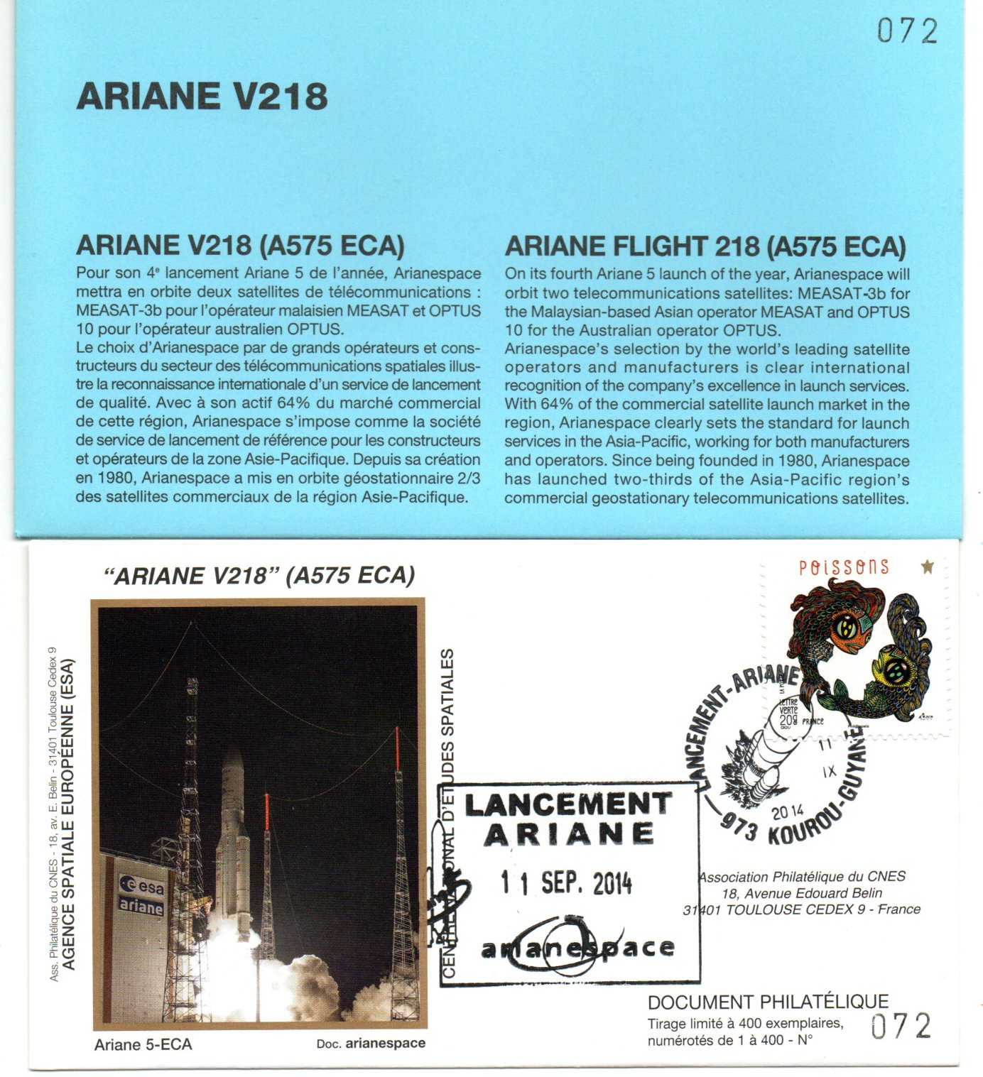 Accueil / ** TOUTES ** / CIRCULATIONS / - Circulations base Kourou - Ariane / Lancement Ariane 575 ECA – Vol 216 – Kourou 11/09/2014 – Pochette CNES 3 Enveloppes – C 45 Lancement Ariane 575 ECA – Vol 216 – Kourou 11/09/2014 – Pochette CNES 3 Enveloppes – C 451,00€ Réf 9010411 25 en stock quantité de Lancement Ariane 575 ECA – Vol 216 – Kourou 11/09/2014 – Pochette CNES 3 Enveloppes – C 45 Ajouter au panier Catégories : - Circulations base Kourou - Ariane, ** TOUTES **, CIRCULATIONS Description Description Produits similaires Vol 13 du 07 Mai 1985 10,00€ Ajouter au panier Vol 35 du 21 Janvier 1990 2,50€ Ajouter au panier Vol 38 du 30 Aout 1990 2,50€ Ajouter au panier Vol 37 du 24 Juillet 1990 2,50€ Ajouter au panier