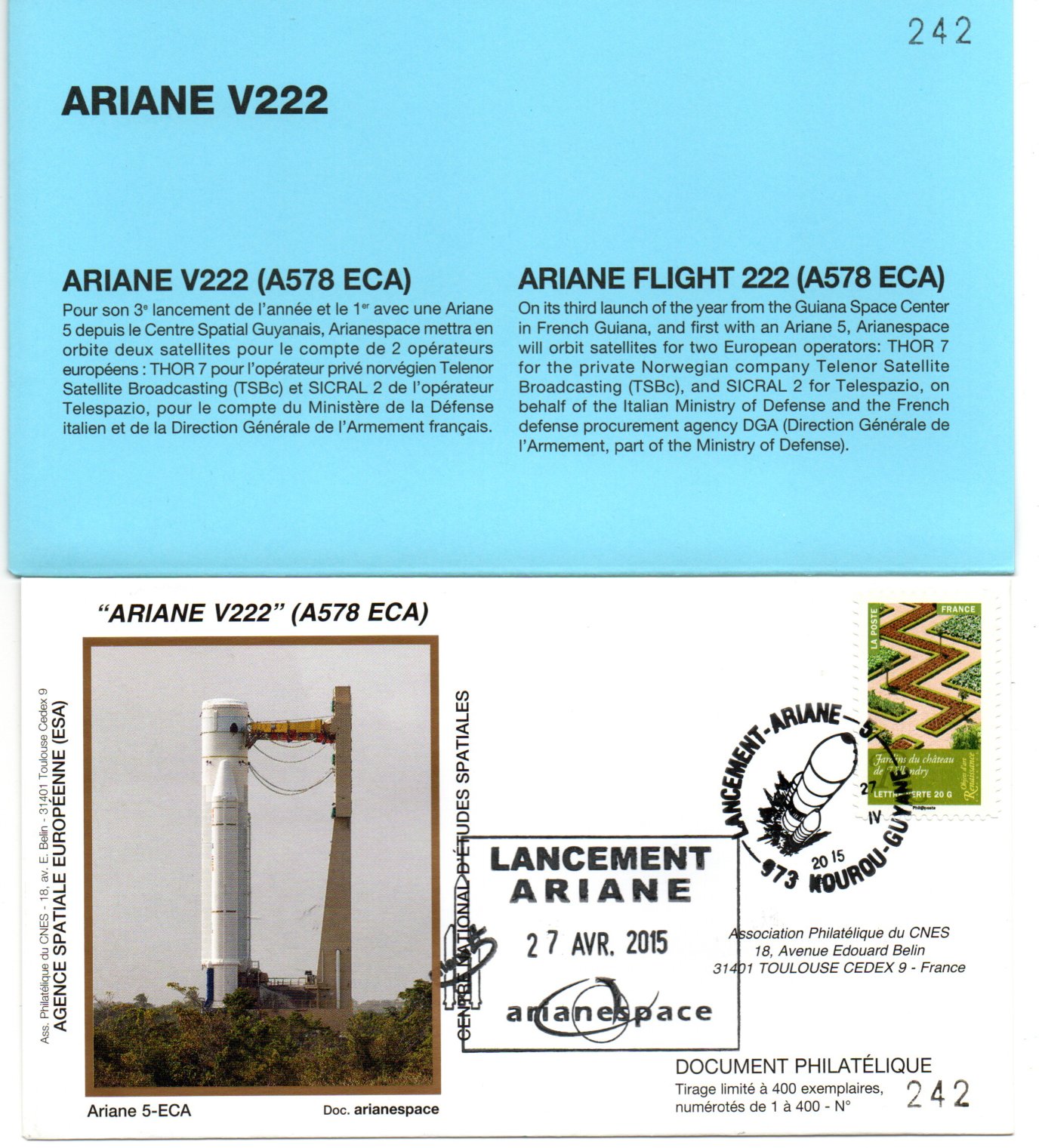 Accueil / ** TOUTES ** / CIRCULATIONS / - Circulations base Kourou - Ariane / Lancement Ariane 578 ECA – Vol 222 – Kourou 27/04/2015 – Pochette CNES 3 Enveloppes – C 45 Lancement Ariane 578 ECA – Vol 222 – Kourou 27/04/2015 – Pochette CNES 3 Enveloppes – C 451,00€ Réf 9210415 25 en stock quantité de Lancement Ariane 578 ECA – Vol 222 – Kourou 27/04/2015 – Pochette CNES 3 Enveloppes – C 45 Ajouter au panier Catégories : - Circulations base Kourou - Ariane, ** TOUTES **, CIRCULATIONS Description Description Produits similaires Vol L01 du 24/12/1979 (signée Chef du Groupe Ariane) 110,00€ Lire la suite Vol L8 du 04 Mars 1984 15,00€ Lire la suite Vol L 5 du 09 Septembre 1982 30,00€ Ajouter au panier Vol 13 du 07 Mai 1985 10,00€ Ajouter au panier