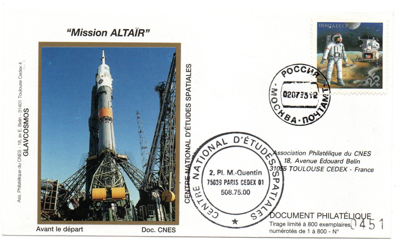 Accueil / ** TOUTES ** / CIRCULATIONS / - Circulation base Russie / Lancement Soyouz TM17 – Baïkonour 01 Juillet 1993 – Mission scientifique franco-soviétique Altaïr Station MIR – 1 Enveloppe CNES – C 47 – Réf 9040024 Lancement Soyouz TM17 – Baïkonour 01 Juillet 1993 – Mission scientifique franco-soviétique Altaïr Station MIR – 1 Enveloppe CNES – C 47 – Réf 90400245,00€ Rupture de stock Catégories : - Circulation base Russie, ** TOUTES **, CIRCULATIONS Description Description Produits similaires Vol 39 du 12 Octobre 1990 2,50€ Ajouter au panier Vol L03 du 19 Juin 1981 40,00€ Lire la suite Vol L02 du 23 mai 1980 45,00€ Lire la suite Vol L01 du 24/12/1979 (Carte Postale Maximum) 110,00€ Lire la suite
