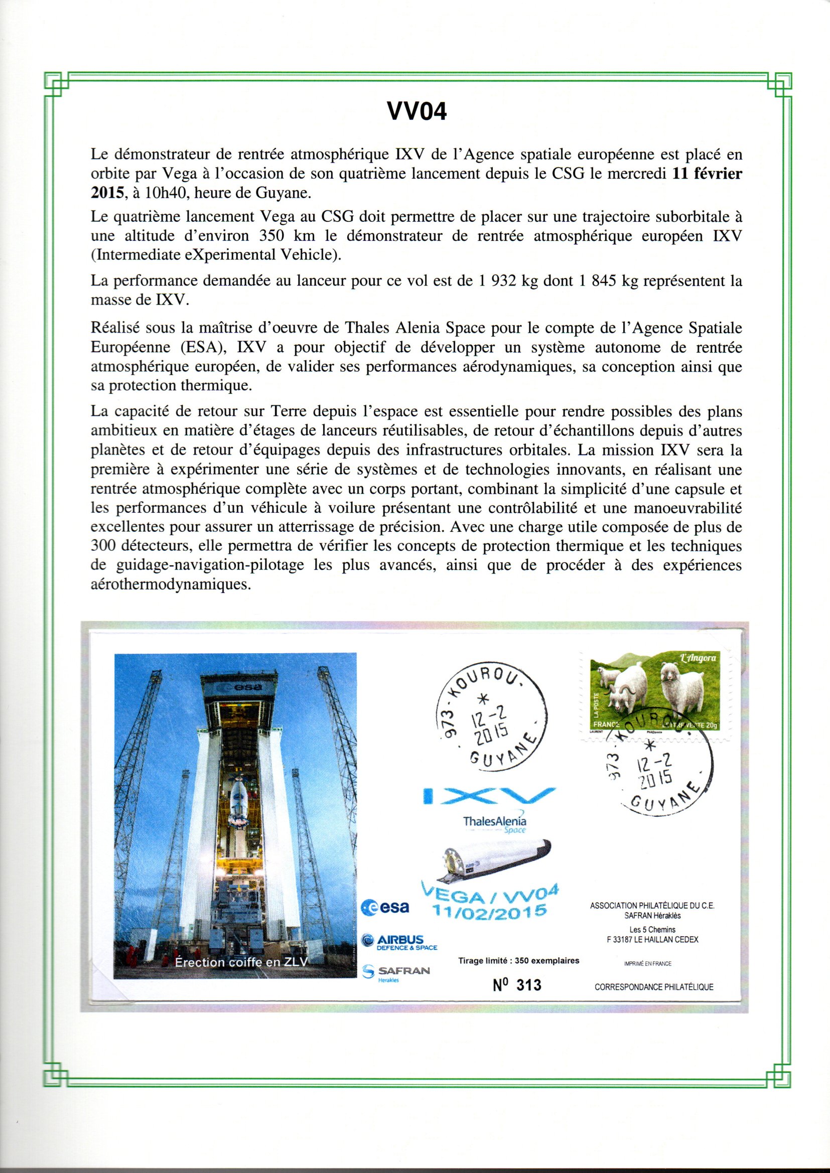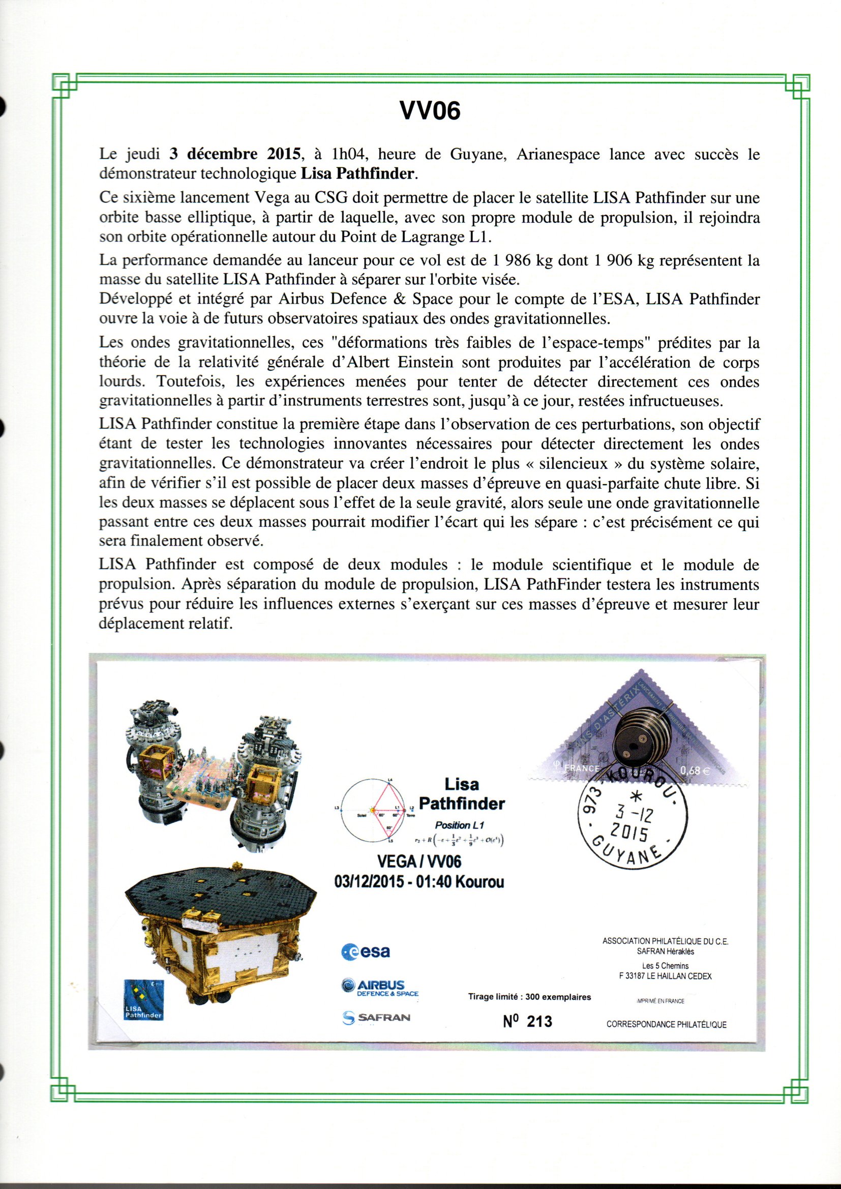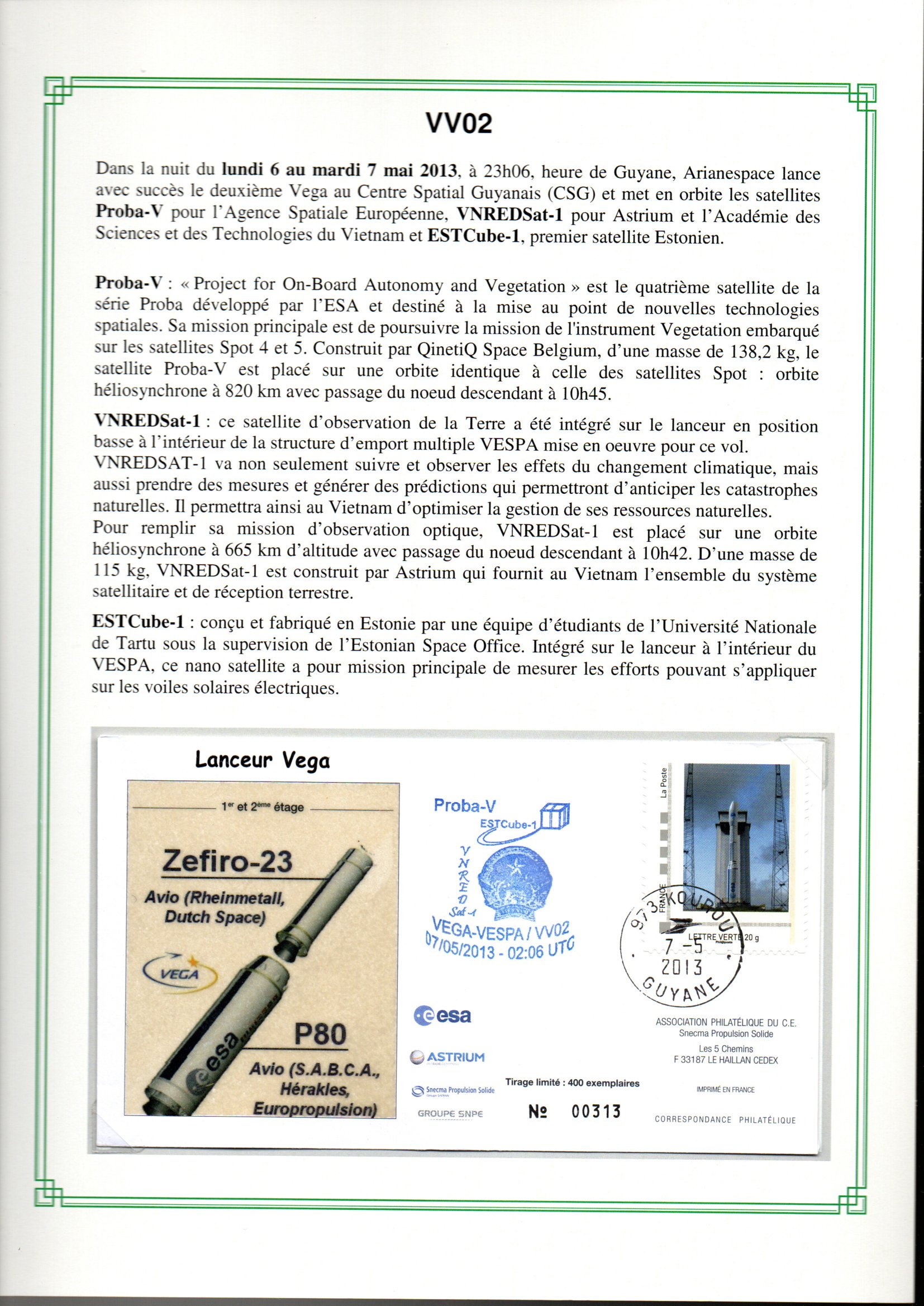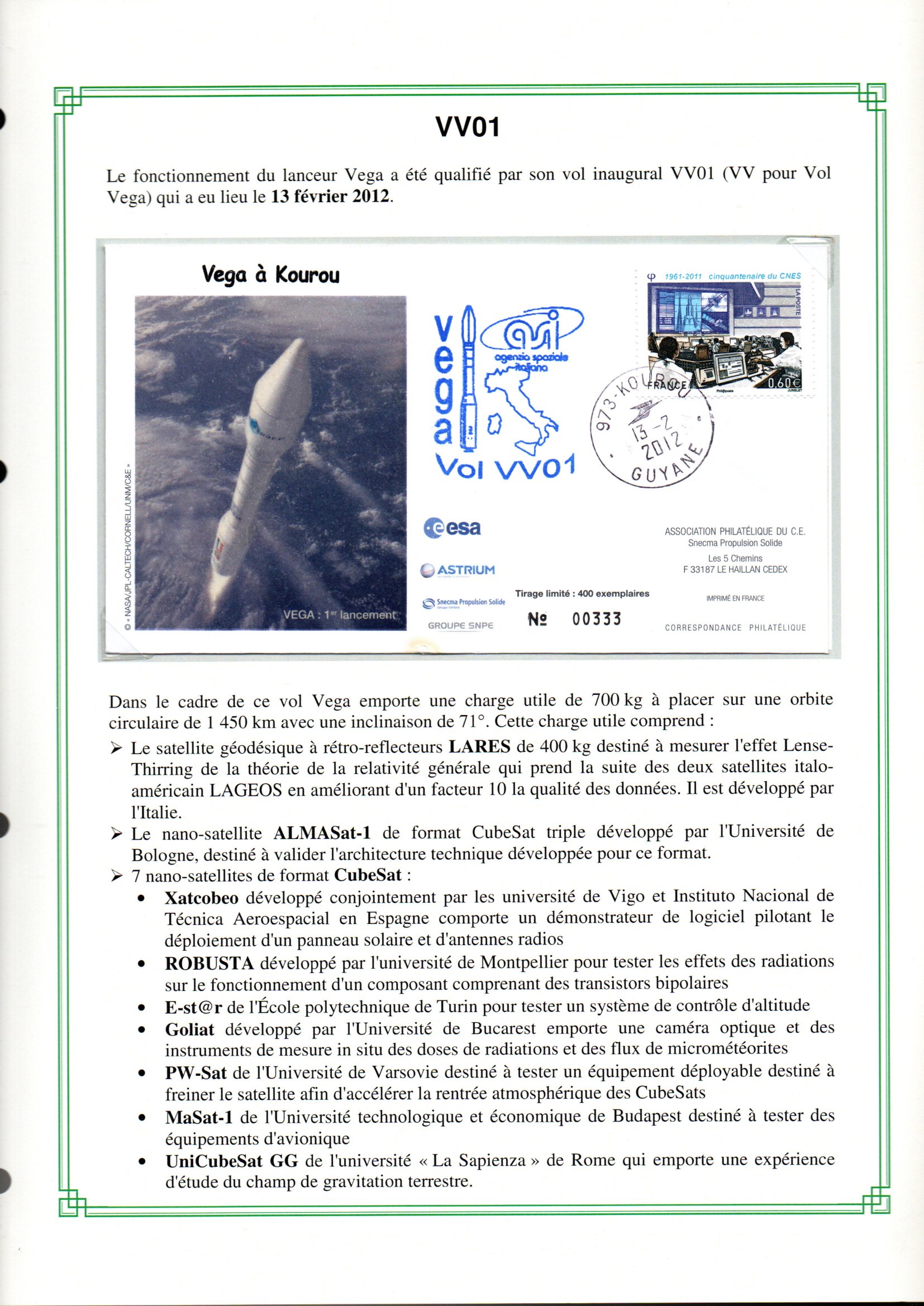 Lancement VEGA vv01 à vv06 – avec 7 fiches techniques présentation lanceur – 13 fiches techniques lancement 1 à 6 – 6 enveloppes SEP tir vega – C 48 – ref 9200024