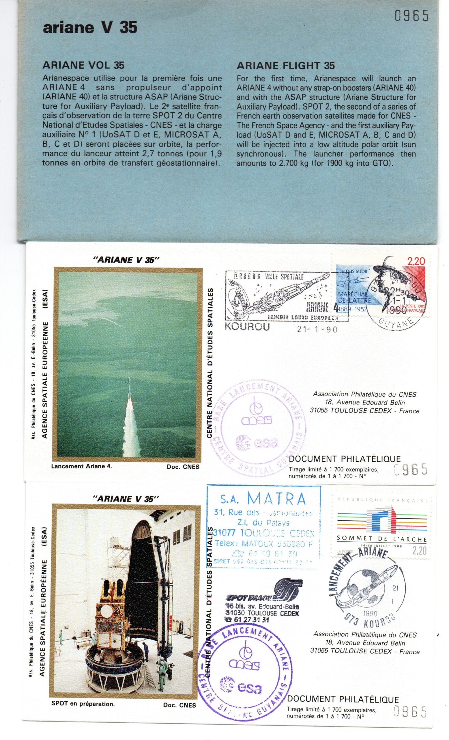 Accueil / ** TOUTES ** / CIRCULATIONS / - Circulations base Kourou - Ariane / Lancement Vol 35 Ariane 40 – 21/01/1990 – Pochette CNES 4 enveloppes – C39 Lancement Vol 35 Ariane 40 – 21/01/1990 – Pochette CNES 4 enveloppes – C391,00€ Réf 9010295 1 en stock quantité de Lancement Vol 35 Ariane 40 - 21/01/1990 - Pochette CNES 4 enveloppes - C39 Ajouter au panier Catégories : - Circulations base Kourou - Ariane, ** TOUTES **, CIRCULATIONS Description Description Produits similaires Vol 11 du 09 Novembre 1984 10,00€ Ajouter au panier Vol 41 du 15 Janvier 1991 2,00€ Ajouter au panier Vol 37 du 24 Juillet 1990 2,50€ Ajouter au panier Vol L03 du 19 Juin 1981 40,00€ Lire la suite
