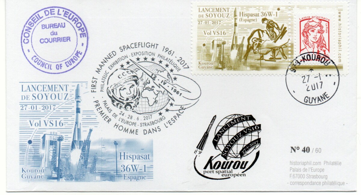 SOYOUZ VS16 – Kourou 27 Janvier 2017 – Enveloppe Conseil de l’Europe – C12 – Réf 9300003