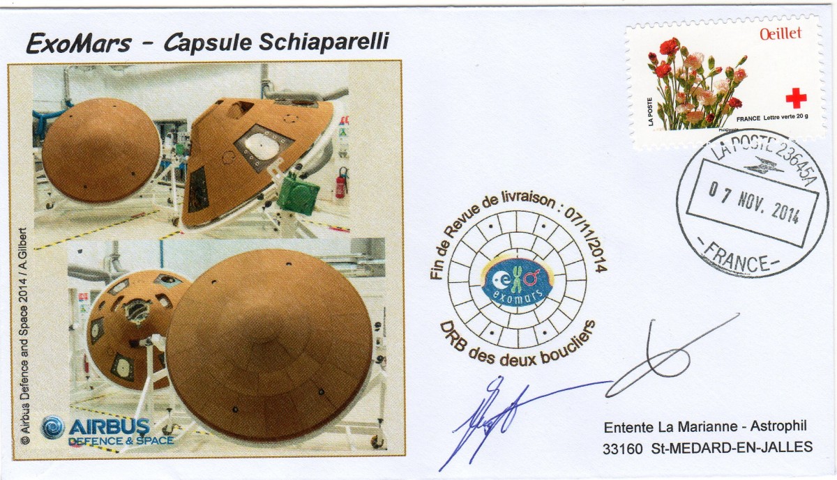20 Enveloppes ont été signées par Aurélien Pisseloup (Responsable avant projets et services en orbite), Yann Mignot (Responsable du service de protection et process avancés). Tous deux travaillant à Airbus Défence and Space Aquitaine. (Ces produits signés sont aujourd’hui épuisés.)