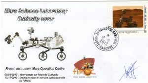 Enveloppe émise par Astrophil et La Mariane pour la première mise en service opérationnelle du FIMOC sur le rover Curiosity. FIMOC Toulouse (Haute Garonne) (CNES). Signature du chef de service du FIMOC