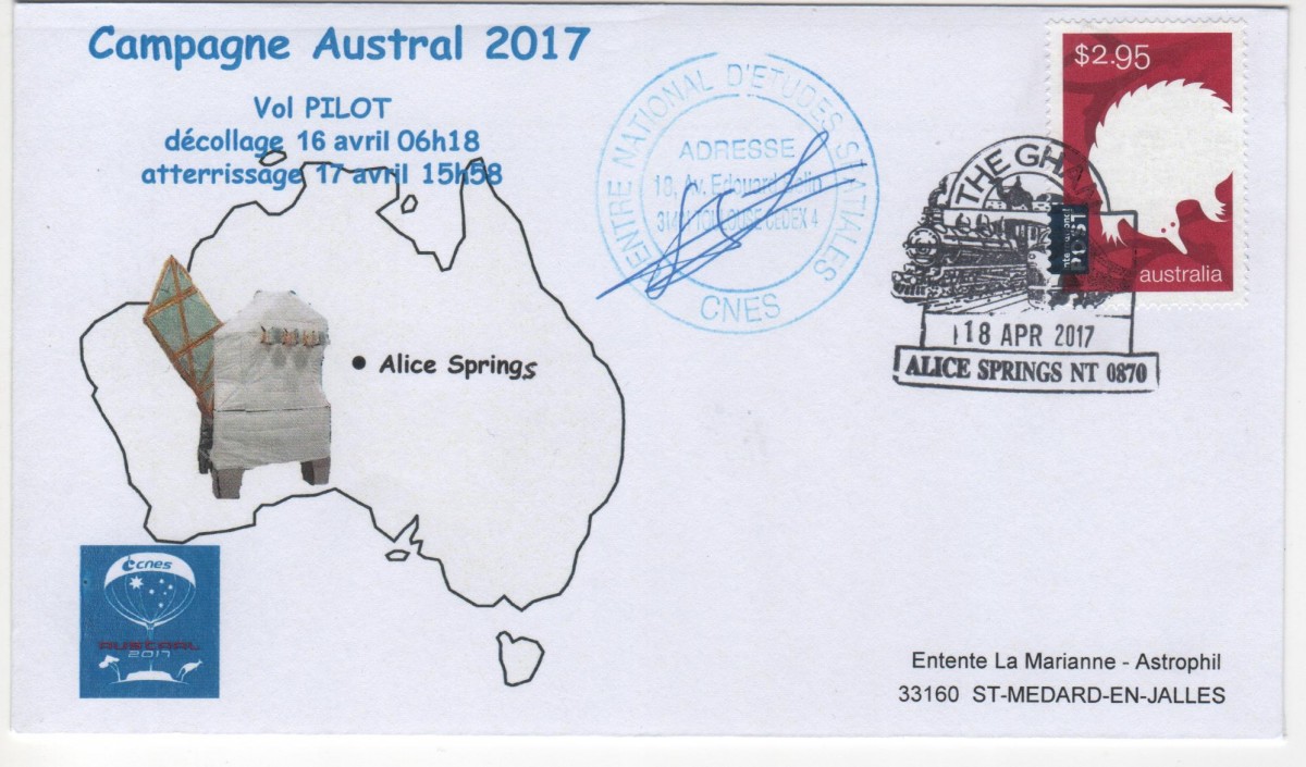 L’accord concernant la campagne « Austral 2017 » a été signé en 2016 à Sydney entre le CNES et le CSIRO qui opère la base de lancement d’Alice Springs. La campagne démarrée au mois de mars, dont l’objectif était de recueillir des données scientifiques accessibles uniquement depuis l’hémisphère Sud, comprenait trois vols de ballons, les missions CLIMAT et CARMEN/CASOLBA pour l’observation de la Terre et la technologie et la mission d’astronomie PILOT, destinée à cartographier le champ magnétique de la Voie Lactée et à comprendre les propriétés magnétiques de la poussière interstellaire.