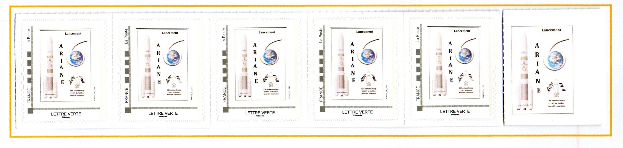 Accueil / ** TOUTES ** / PRODUCTIONS ASTROPHIL / - Divers, Timbre à Moi / Timbre à Moi émis par ASTROPHIL pour le premier lancement d’ARIANE 6 Timbre à Moi émis par ASTROPHIL pour le premier lancement d’ARIANE 610,00€ Réf 7201400 8 en stock quantité de Timbre à Moi émis par ASTROPHIL pour le premier lancement d'ARIANE 6 Ajouter au panier Catégories : - Divers, Timbre à Moi, ** TOUTES **, PRODUCTIONS ASTROPHIL Description Description Timbres à Moi émis par l’association ASTROPHIL pour le premier lancement ARIANE 6 – Bande de 5 timbres + 1 vignette sans valeur – Vente essentiellement par Bande pas de possibilité de fractionner. Produits similaires Vol L8 du 04 Mars 1984 15,00€ Lire la suite Vol 12 du 08 Février 1985 10,00€ Lire la suite Vol 35 du 21 Janvier 1990 2,50€ Ajouter au panier Vol 40 du 20 Novembre 1990 2,00€ Ajouter au panier
